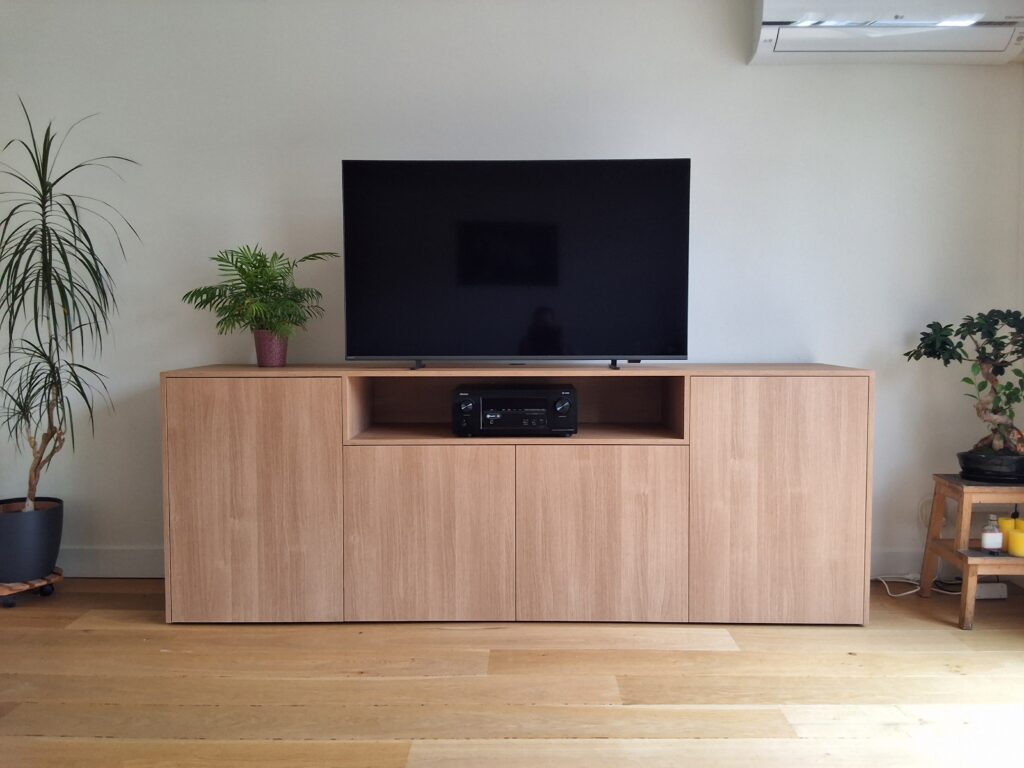 Vind de perfecte match voor jouw woonkamer! Een o maat gemaakt tv-meubel dat past bij uw interieur, voldoende opbergruimte en alle kabels geordend. Zeg vaarwel tegen de rommel en hallo tegen een gezellige filmavond!